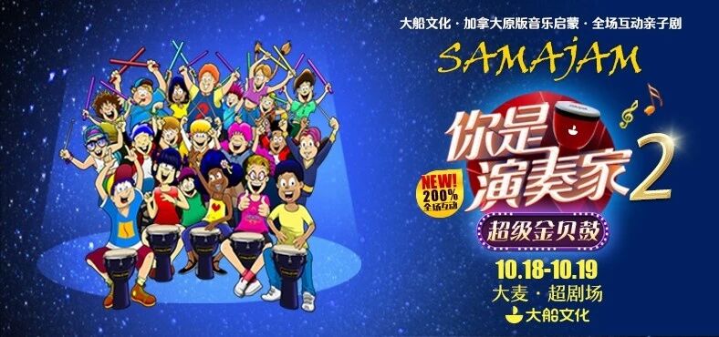 这里有一场演出,无论您是3岁还是103岁,它200%的音乐互动体验和寓教于乐的演出形式都绝不会让你失望!加拿大原版引进风靡北美的音乐启蒙互动亲子剧2019全新升级超级金贝鼓首次华丽登场更酷炫专业的打击乐器200%全场